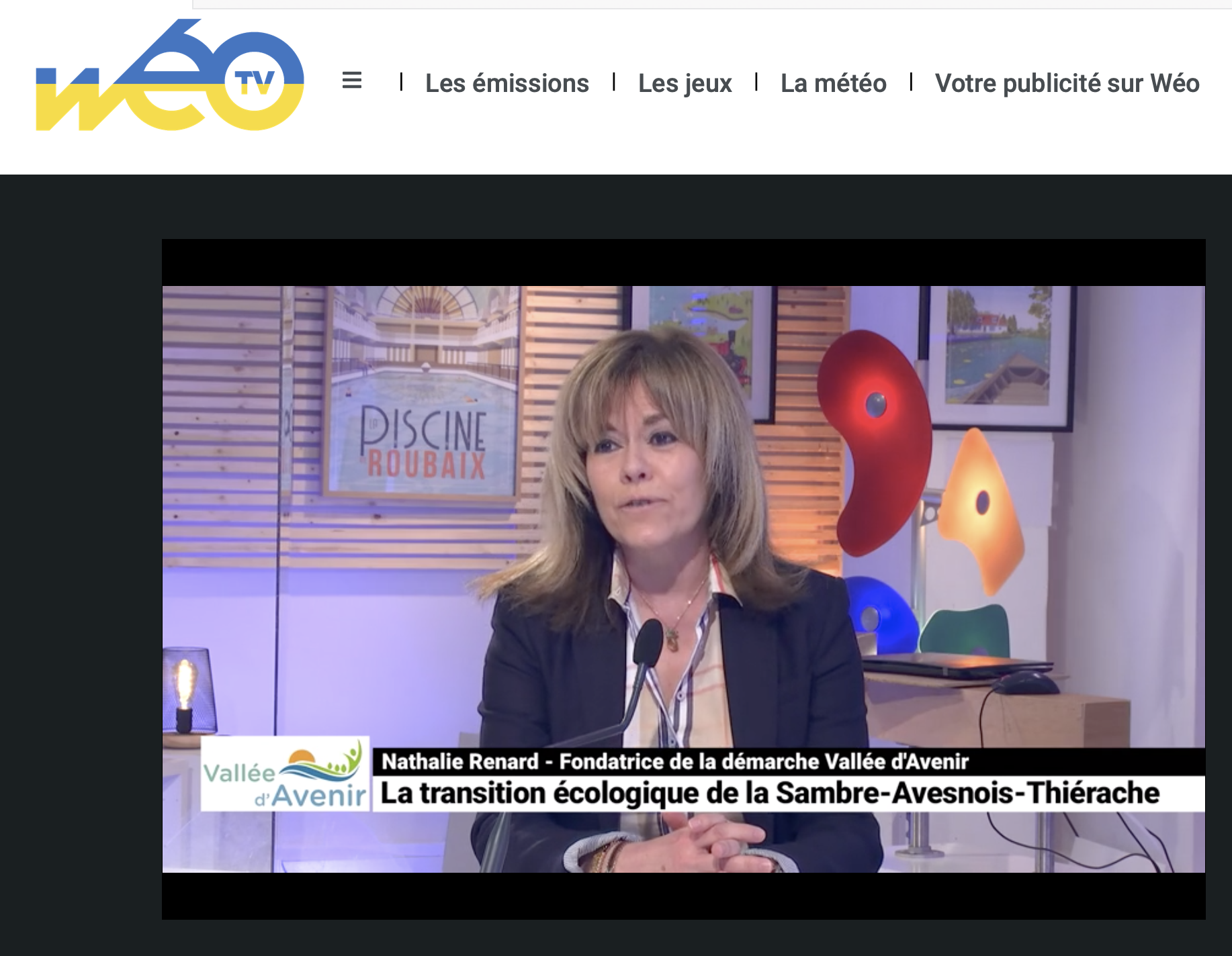 Interview de Nathalie Renard - Vallée d'Avenir pour la chaîne WEOtv sur le thème de la transition écologique de la Sambre-Avesnois-Thiérache